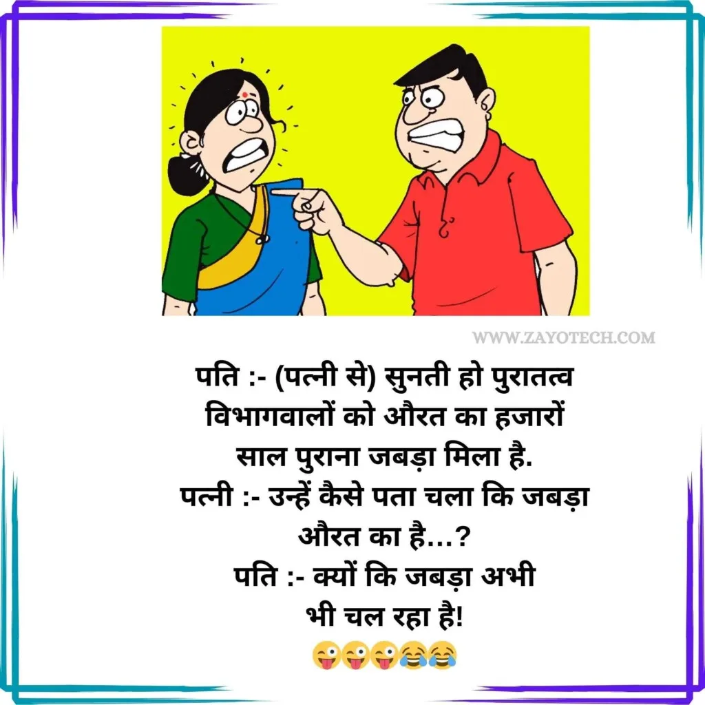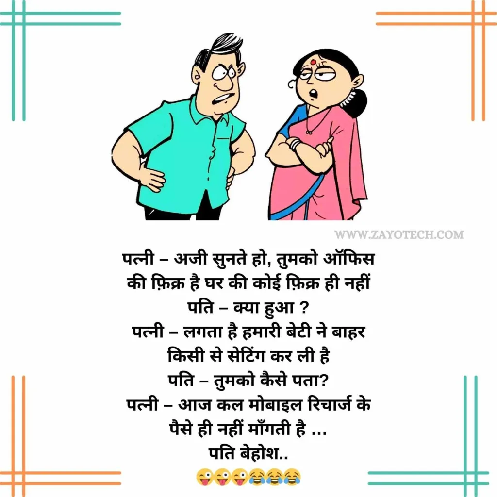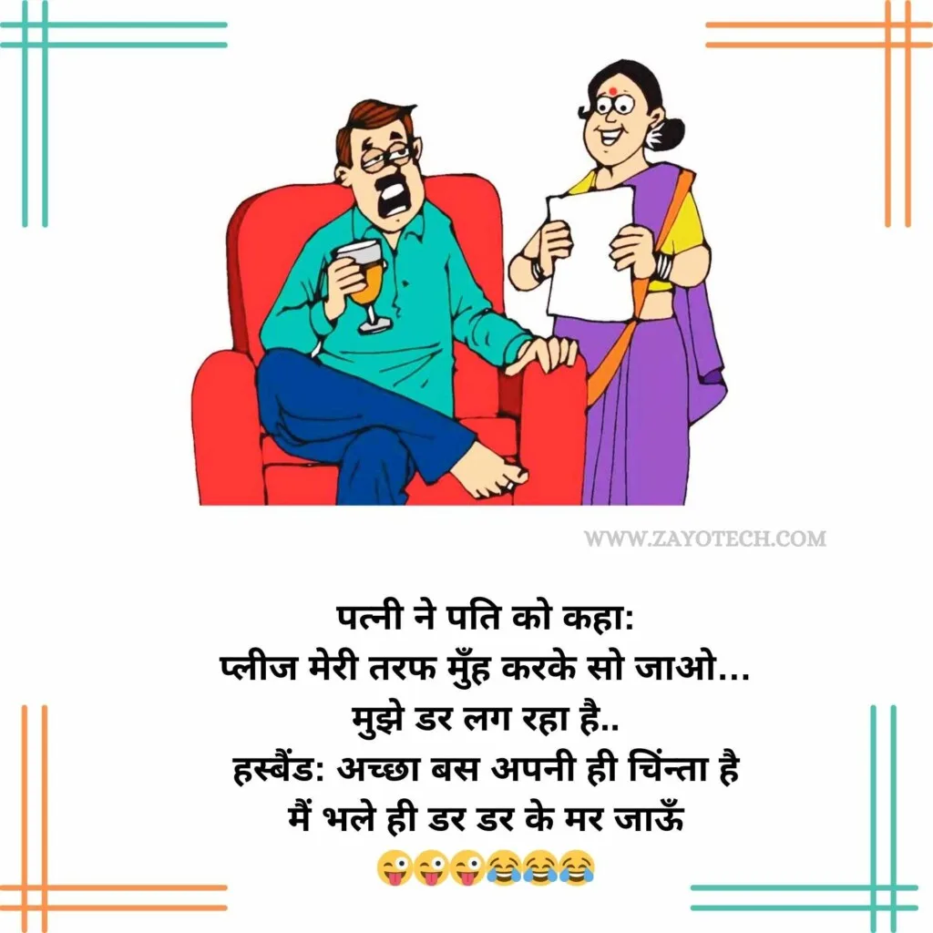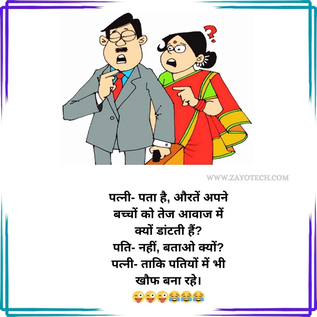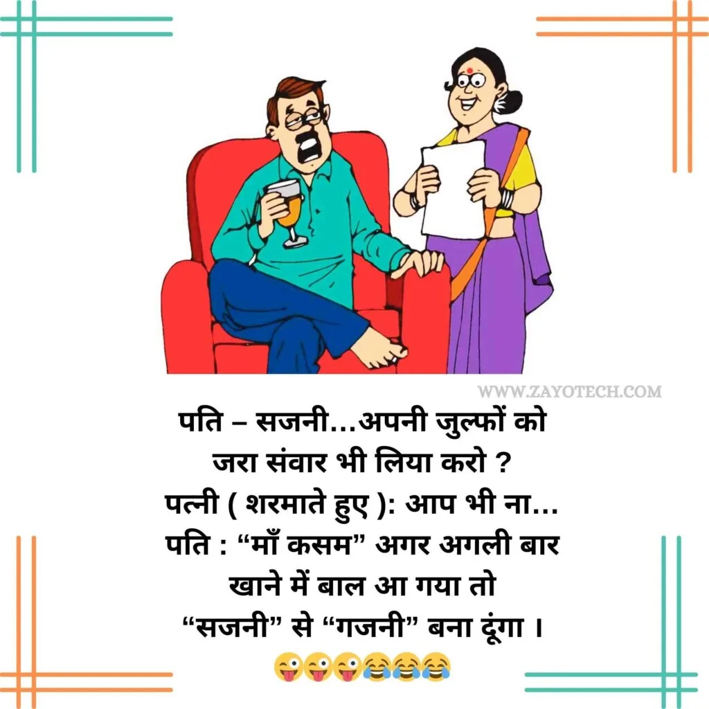 पति-पत्नी के मजेदार जोक्स हमेशा रिश्तों की मिठास और मस्ती को एक हल्के-फुल्के अंदाज़ में पेश करते हैं। जैसे कि –